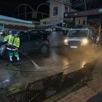 Bursa'da Tarihi Çarşı ve Hanlar Bölgesi'nde Gece Temizlik Çalışması Yapıldı