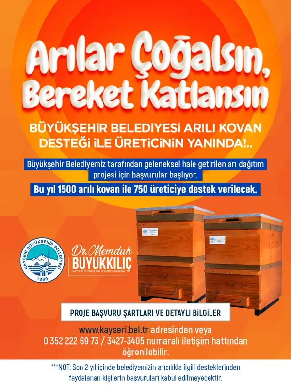 Kayseri Büyükşehir Belediyesi, daha önce hayata geçirdiği arıcılık projelerinin ardından, 2026 yılı için 'Arılar Çoğalsın, Bereket Katlansın' projesini başlatıyor. Belediye, bu projeyle arıcılık alanında üretim yapan ve yapmak isteyen vatandaşlara destek vermeyi sürdürüyor.