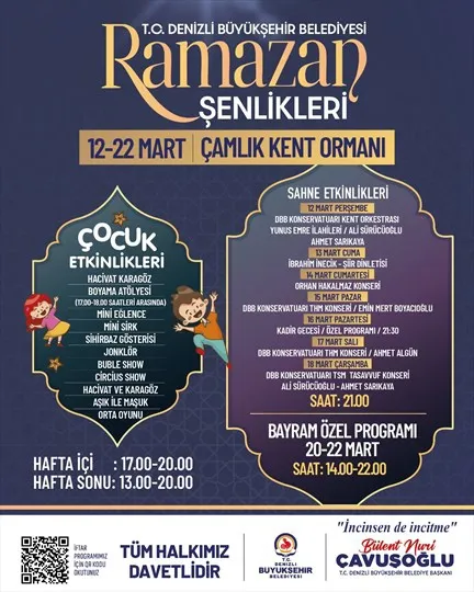 Denizli Büyükşehir Belediyesi’nin Ramazan ayı boyunca mahallelerde düzenlediği etkinliklerin finali 12–22 Mart tarihleri arasında Çamlık Kent Ormanı’nda yapılacak. Çocuk etkinliklerinden konserlere uzanan zengin programda Orhan Hakalmaz da sahne alacak.