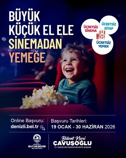 Denizli Büyükşehir Belediyesi, dezavantajlı ailelerin sosyal hayata katılımını artırmak amacıyla 'Büyük Küçük El Ele Sinemadan Yemeğe' projesini hayata geçirdi. Proje kapsamında, ailelere alışveriş merkezlerinde kullanılmak üzere sinema, yemek ve kitap bileti desteği verilecek.