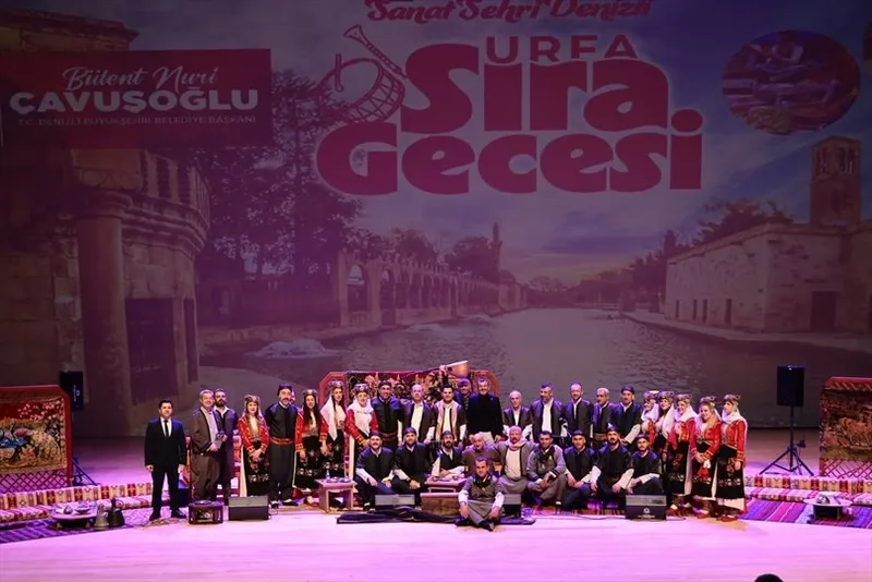 Denizli Büyükşehir Belediyesi'nin düzenlediği 'Kültürler Buluşuyor-Urfa Sıra Gecesi' etkinliği, Şanlıurfa'dan gelen müzik ve dans toplulukları ile çiğ köfte ikramıyla renkli bir geceye sahne oldu.