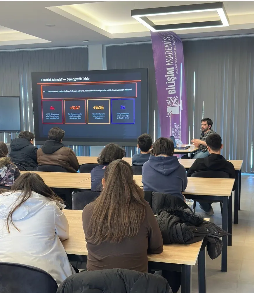 Akademide düzenlenen yapay zekâ ve siber güvenlik eğitimi de teknoloji meraklılarını bir araya getirdi. Eğitimin ikinci gününde katılımcılar, bu alanlardaki temel kavramları yakından tanıma fırsatı buldu. Gün sonunda düzenlenen Kahoot bilgi yarışması ile ise katılımcılar öğrendiklerini eğlenceli bir ortamda test etti.