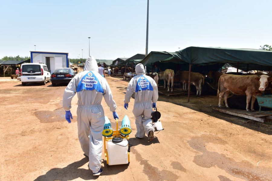Kepez’in kurban pazarlarındaki dezenfekte çalışmaları 12 kişilik 6 ayrı ekip tarafından gerçekleştirildi. Kurban pazarlarında her yıl gerek hayvan, gerekse toplum sağlığı açısından tehdit unsuru içerecek hastalıklara karşı gerçekleştirilen ilaçlama ve dezenfekte çalışmalarına bu yıl Dünya’yı etkisi altına alan koronavirüse karşı dezenfeksiyon işlemleri de eklendi. Satış ve kesim alanlarındaki dezenfekte işlemleri Kurban Bayramı boyunca da her gün düzenli olarak gerçekleştirilecek.