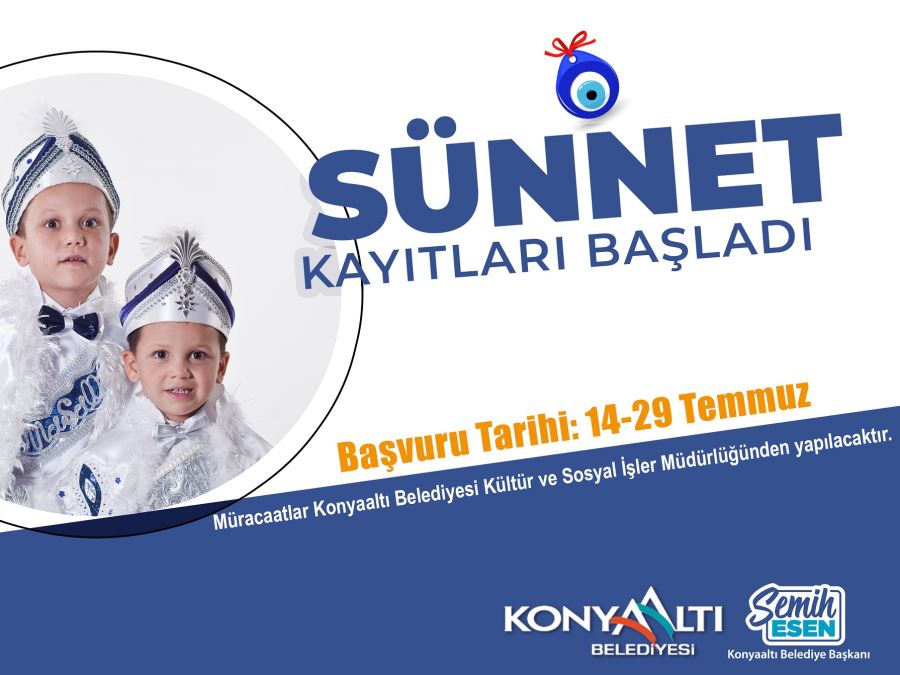 Her yıl onlarca çocuğun sünnetini üstlenen Konyaaltı Belediyesi, bu yılki sünnet töreni için kayıtları almaya başladı. Daha çok maddi durumu elverişli olmayan ailelerin yararlanabildiği sünnet töreninin kirveliğini de Konyaaltı Belediye Başkanı Semih Esen yapıyor.