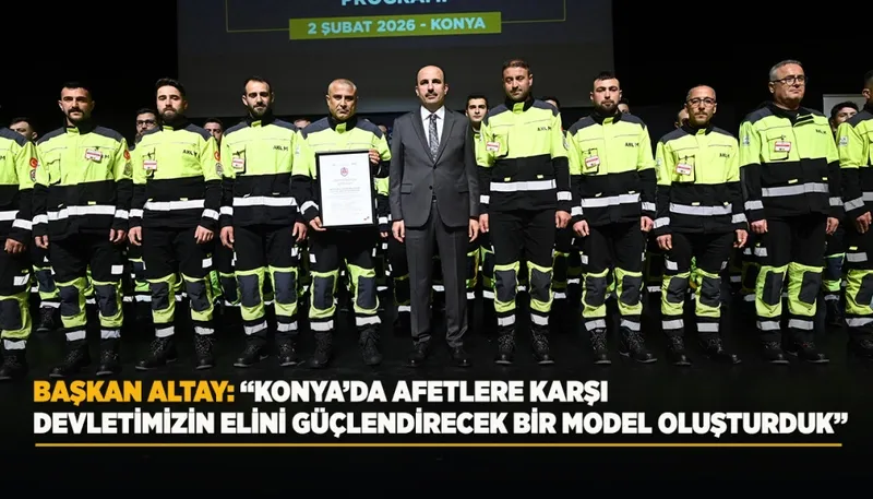 Başkan Altay, Konya Büyükşehir Belediyesi'nin hafif, orta ve ağır seviye kentsel arama ve kurtarma akreditasyonunun üçünü birden alan ilk yerel yönetim olduğunu açıkladı. Konya'da kurulan bu yapının, afetlere karşı devletin elini güçlendirecek bir model niteliği taşıdığını ifade etti. 6 Şubat 2023 depremlerinde yaşanan derin acıya değinen Altay, aynı gün milletin merhamet, fedakarlık ve dayanışma ruhunun da ortaya çıktığını söyledi.