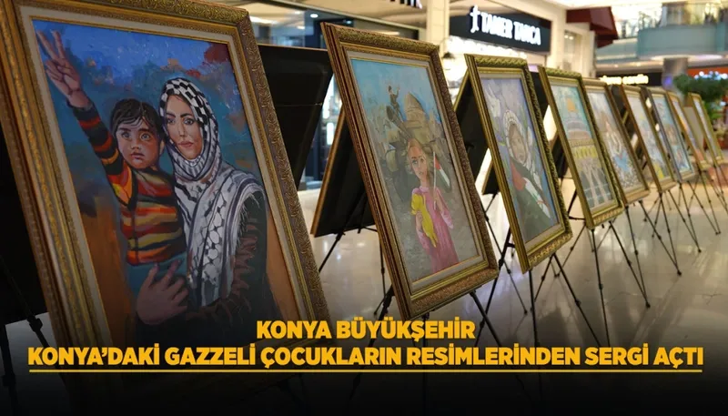 Konya'da misafir edilen 150 Filistinli çocuk arasından resim yeteneği olanların eserleri, bir alışveriş merkezinde sergilenmeye başladı. Çocukların duygu, düşünce ve yaşadıkları zorlukları yansıtan 20 eser, ziyaretçilerden ilgi gördü.