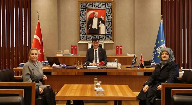 S.S. Kütahya Katılımcı Kadınlar Kadın Girişimi Üretim ve İşletme Kooperatifi Başkanı Kadriye Kara ve yönetim kurulu, Kütahya Belediye Başkanı Eyüp Kahveci'yi makamında ziyaret etti.
