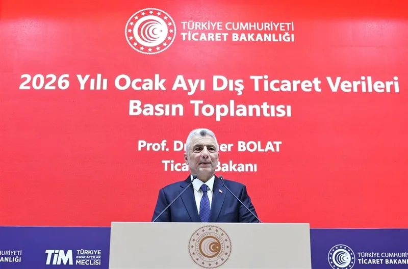Ticaret Bakanı Ömer Bolat, Türkiye İhracatçılar Meclisi (TİM) Başkanı Mustafa Gültepe ile birlikte düzenlediği basın toplantısında ocak ayı dış ticaret rakamlarını kamuoyuna duyurdu. Bolat, geçen yılın ticaret, siyaset ve jeopolitik gerilimler açısından zor geçmesine rağmen Türk ihracatçılarının önemli başarılara imza attığını ifade etti.