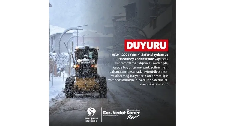 Gümüşhane Belediyesi, 4 Ocak 2026 Pazar gününe ait resmi bir duyuru yayımladı.