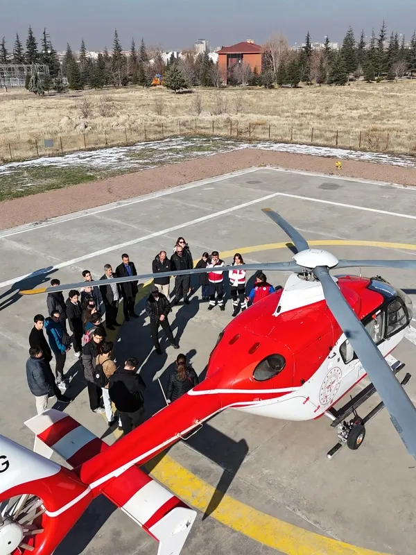 Akademi öğrencileri, teknik bir gezi düzenleyerek hava ambulans hizmetlerinde kullanılan bir helikopterin teknik yapısı, uçuş sistemleri ve havacılık teknolojileri hakkında yetkililerden bilgi aldı. Öğrenciler, teorik bilgilerini sahada yapılan uygulamalı anlatımlarla pekiştirme imkânı buldu.