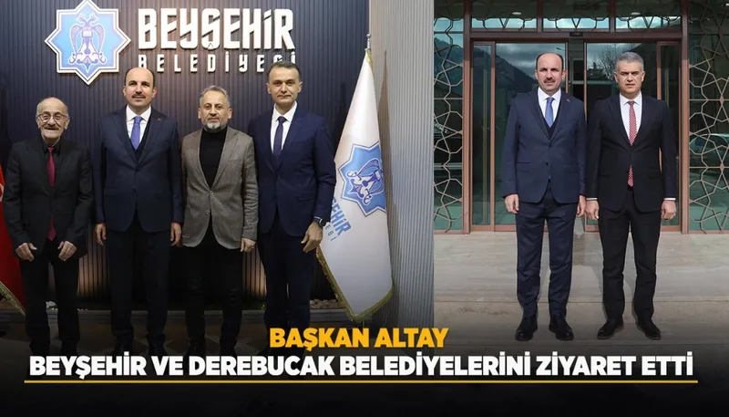 Ziyaretler kapsamında ilk olarak AK Parti Beyşehir İlçe Başkanı Kahraman Şanal ile Beyşehir Belediyesi’nde Belediye Başkanı Adil Bayındır ile bir toplantı gerçekleştiren Başkan Altay, daha sonra Derebucak Belediyesi’ne geçti.