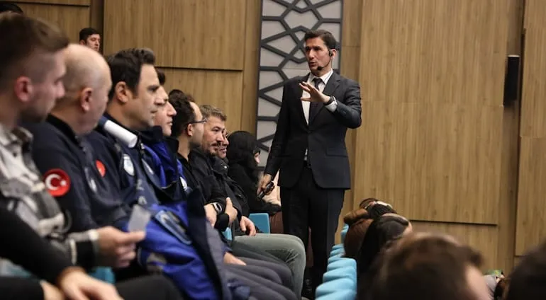 TBB Eğitimcisi Taşkın Tahmaz, kendisini "yol arkadaşı" olarak tanımlayarak, her bireyin kendi içsel potansiyelini keşfetmesi gerektiğine vurgu yaptı. Tahmaz, kamu hizmetinde insan odaklı yaklaşımın ve doğru iletişimin toplumsal güvenin temeli olduğunu ifade etti.