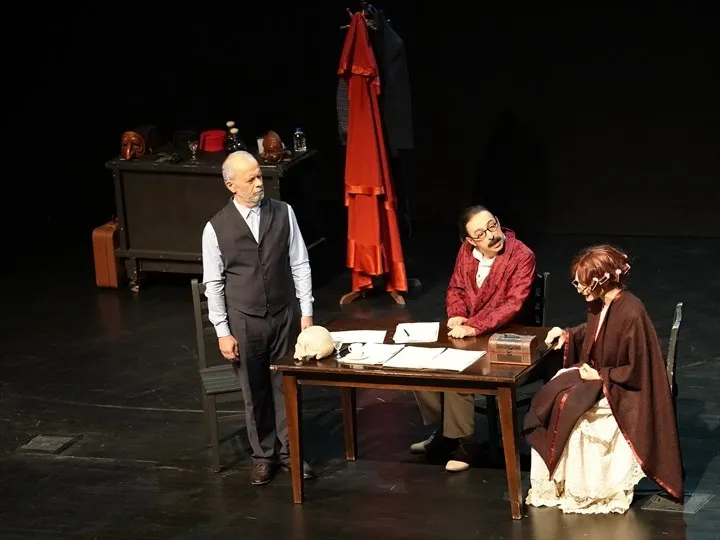 Banu Açıkdeniz, Cüneyt Yalaz ve İlker Yasin Keskin'in rol aldığı oyun, Muhsin Ertuğrul'a Vahram Papazyan ve hayal ürünü Latife Hanım'ın hayaletlerinin eşlik ettiği tarihi hesaplaşmaları ele alıyor. Ekip çalışması ürünü olan eser, tiyatro tarihinin önemli figürlerini mercek altına alıyor.